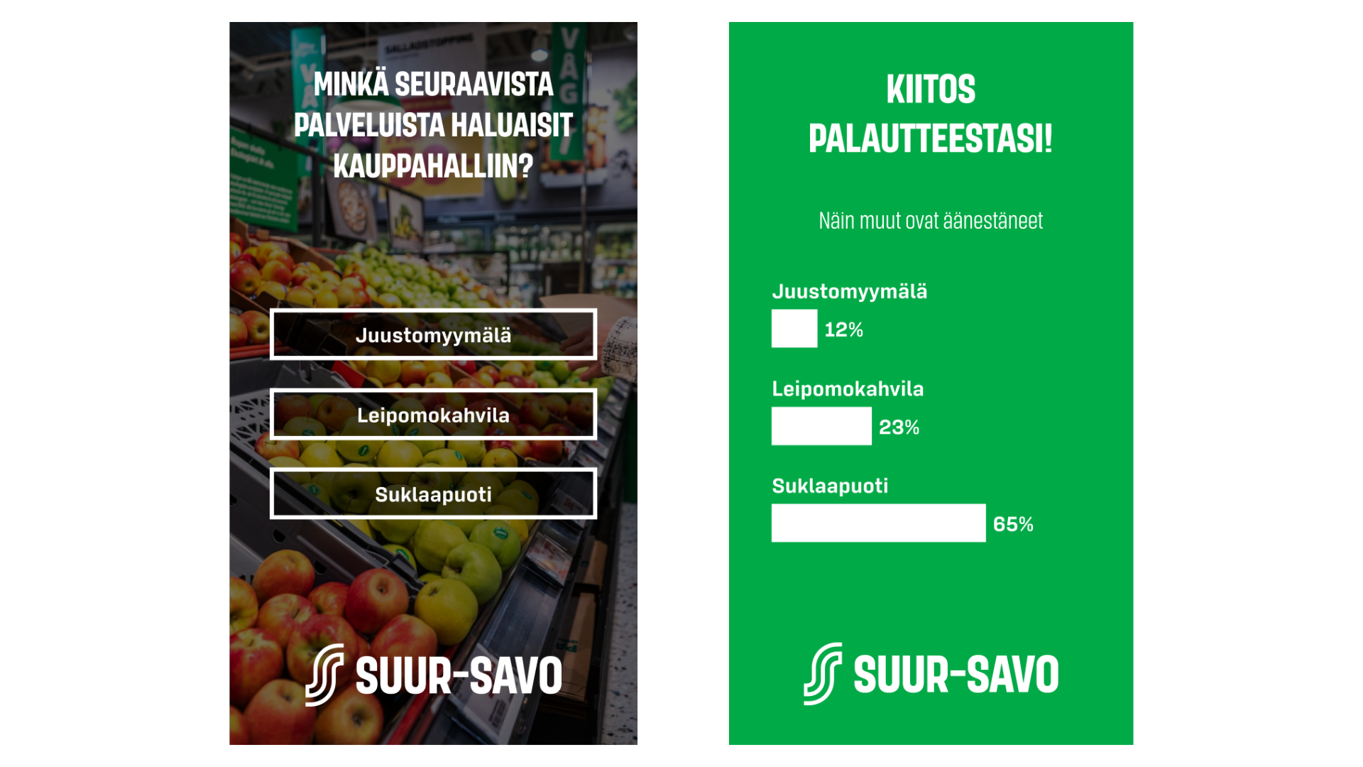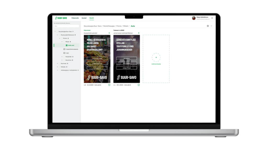 Osuuskauppa Suur-Savo tarvitsi kosketusnäyttöjärjestelmän asiakasrajapintaan suoraan myymälään toteutettuna, joka mahdollistaisi zero party datan keräämisen ja analysoinnin sekä sisällön tehokkaan hallinnan ja esittämisen.