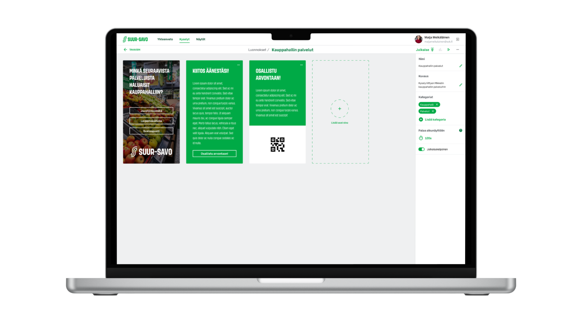 Osuuskauppa Suur-Savo modernisoi asiakaspalvelunsa ottamalla käyttöön Susa-nimisen, avoimeen lähdekoodiin perustuvan kosketusnäyttöjärjestelmän. Tämä innovatiivinen järjestelmä mahdollistaa monipuolisen asiakasdatan keräämisen ja analysoinnin suoraan myymälässä sekä tehokkaan sisällönhallinnan etänä. Metatavu toteutti kokonaisvaltaisen selvitysprojektin, joka suunniteltiin palvelumuotoilun avulla, varmistaen järjestelmän saumattoman käyttöönoton ja kustannustehokkuuden ilman lisenssimaksuja.